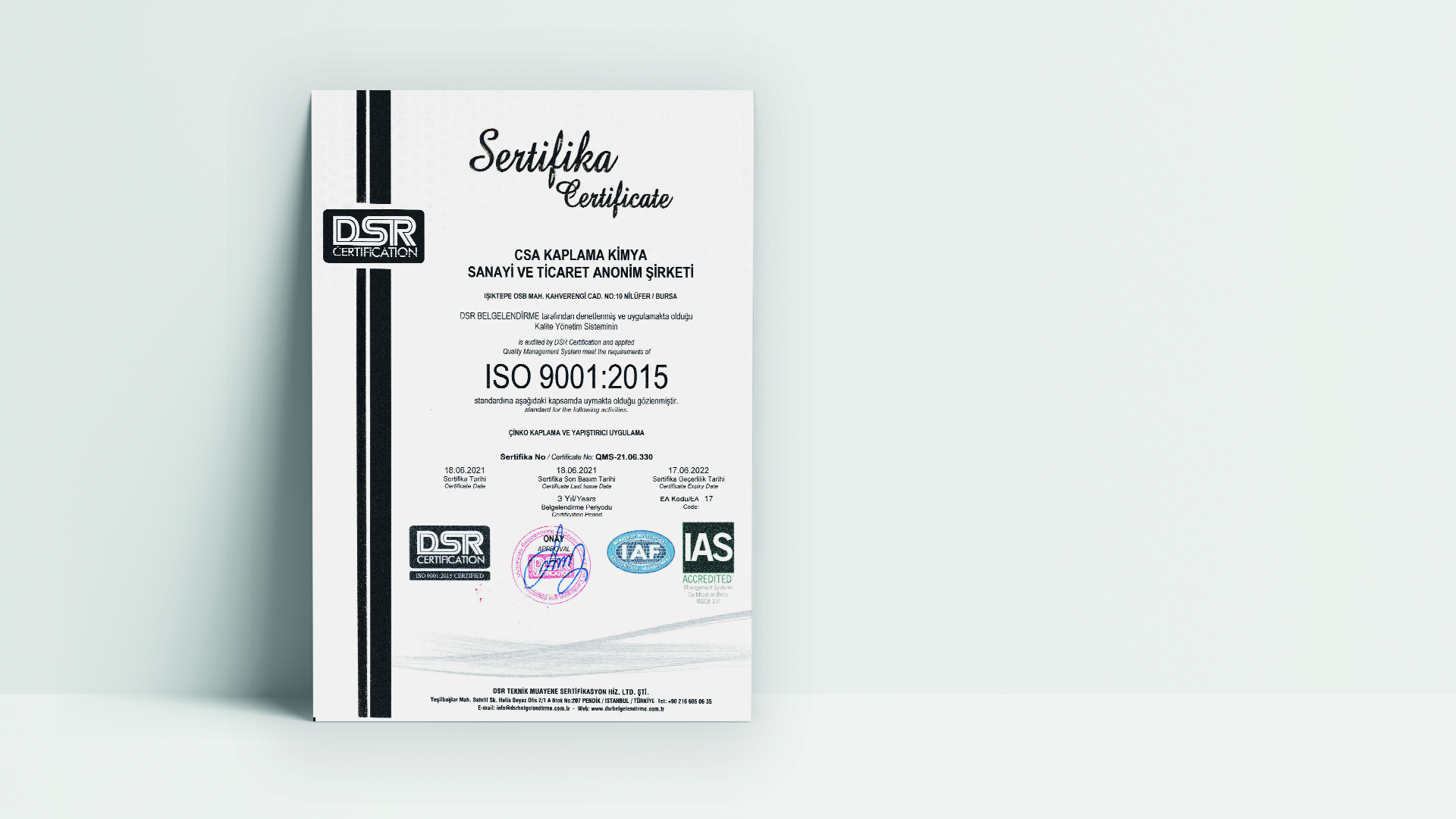 CSA Kaplama , ISO 9001:2015 kalite yönetim sistemi standartlarına uygun üretim hattı ile kaplama sektörünün ihtiyaç duyduğu tüm yeteneklere sahiptir.